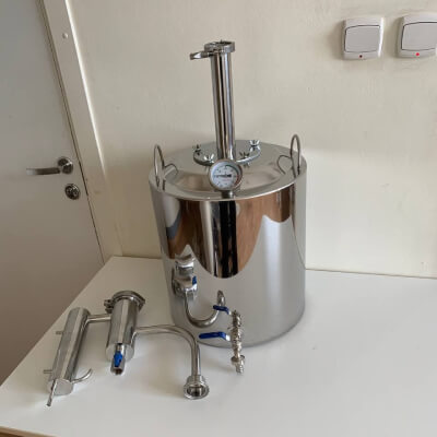 Заключительный этап очистки — сухопарник с краном для слива. На его стенках происходят повторная конденсация и переиспарения спирта. Одновременно с эффективной очисткой происходит и ароматизация напитка. (Попробуйте добавить в сухопарник цедру лимона или ароматные травы).