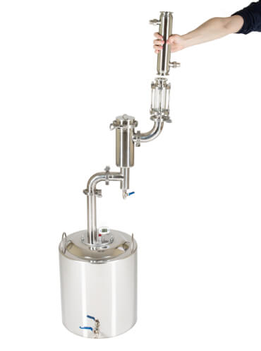 С дополнительной царгой на 45 см компактный дистиллятор Германия превращается в мощный самогонный аппарат.